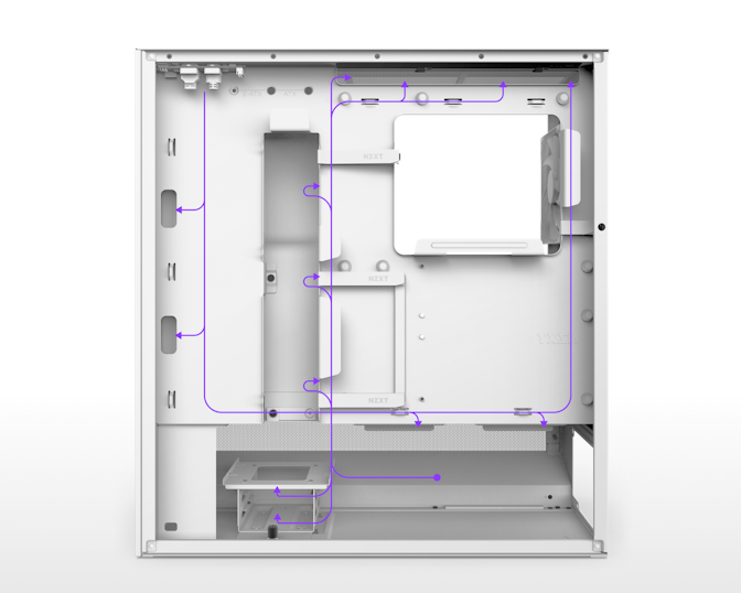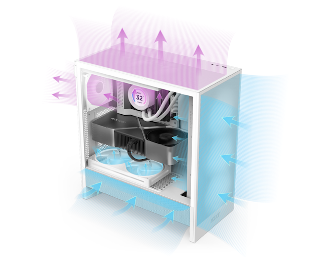 Το δικτυωτό κάλυμμα PSU μεγιστοποιεί την εισαγωγή αέρα από δύο ανεμιστήρες 120 χιλιοστών που τοποθετούνται στο κάτω μέρος (δεν περιλαμβάνονται).