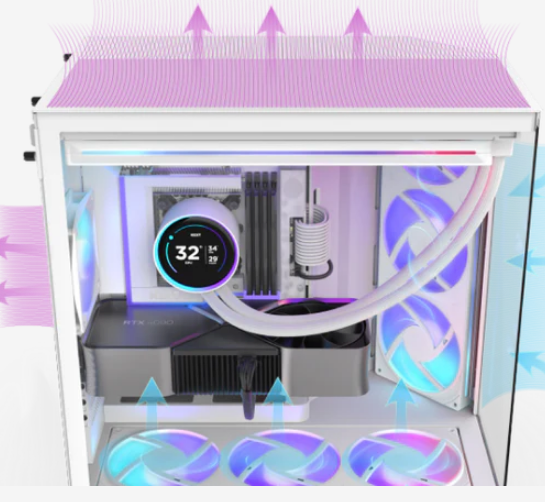 - Χωρητικότητα δέκα ανεμιστήρων: Υποστηρίζει έως και εννέα ανεμιστήρες 140 mm στο πάνω, μπροστά δεξιά και κάτω μέρος, καθώς και έναν ανεμιστήρα 120 mm στο πίσω μέρος.