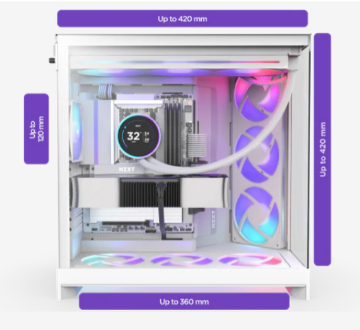 Χωράει θερμαντικά σώματα έως και 420 mm στα επάνω και μπροστινά δεξιά πάνελ για ευέλικτη ψύξη.